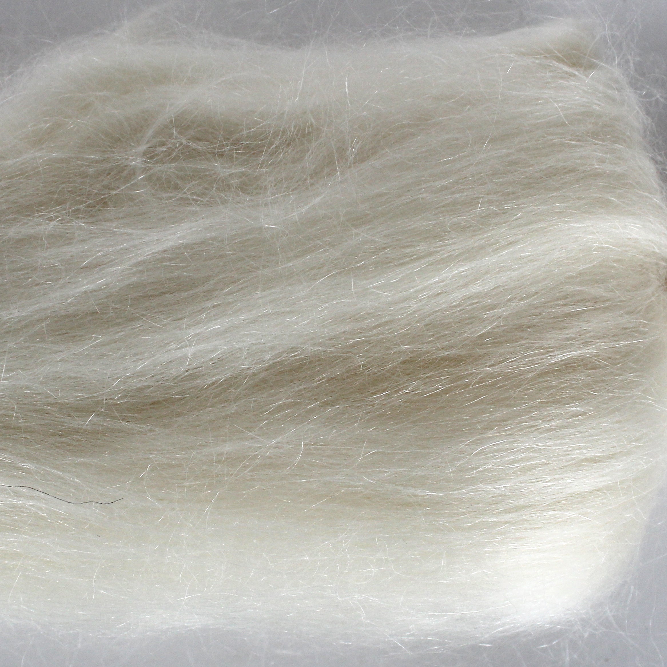The fiber: Mohair's diameter ranges from 23 microns at first shearing to 38 microns in older animals. Light and insulating, its tensile strength is significantly higher than that of merino wool. Like wool, mohair has surface scales, but they are thinner, making it smooth to the touch. Light reflected from the surface gives mohair a characteristic lustre.