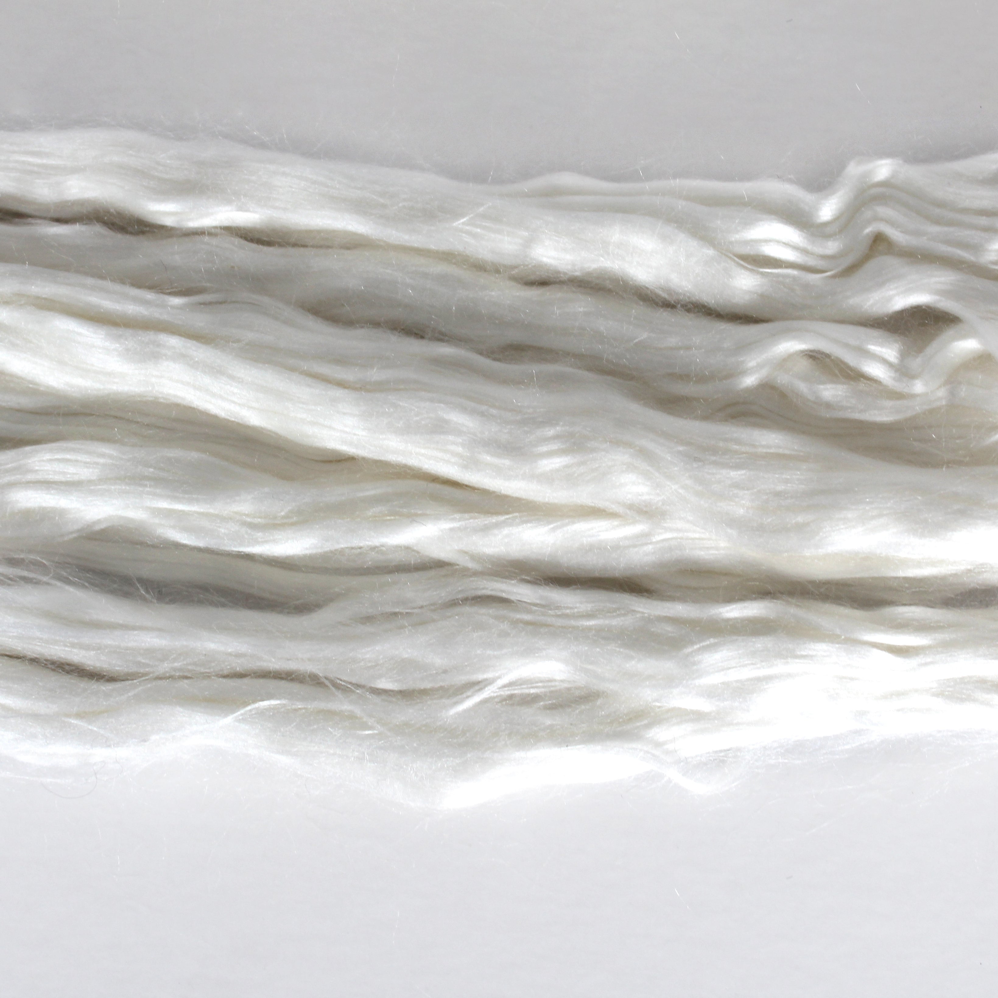 The fibe: A silk filament is a continuous thread of great tensile strength measuring from 500 to 1 500 metres in length, with a diameter of 10-13 microns. In woven silk, the fibre's triangular structure acts as a prism that refracts light, giving silk cloth its highly prized "natural shimmer". It has good absorbency, low conductivity and dyes easily.